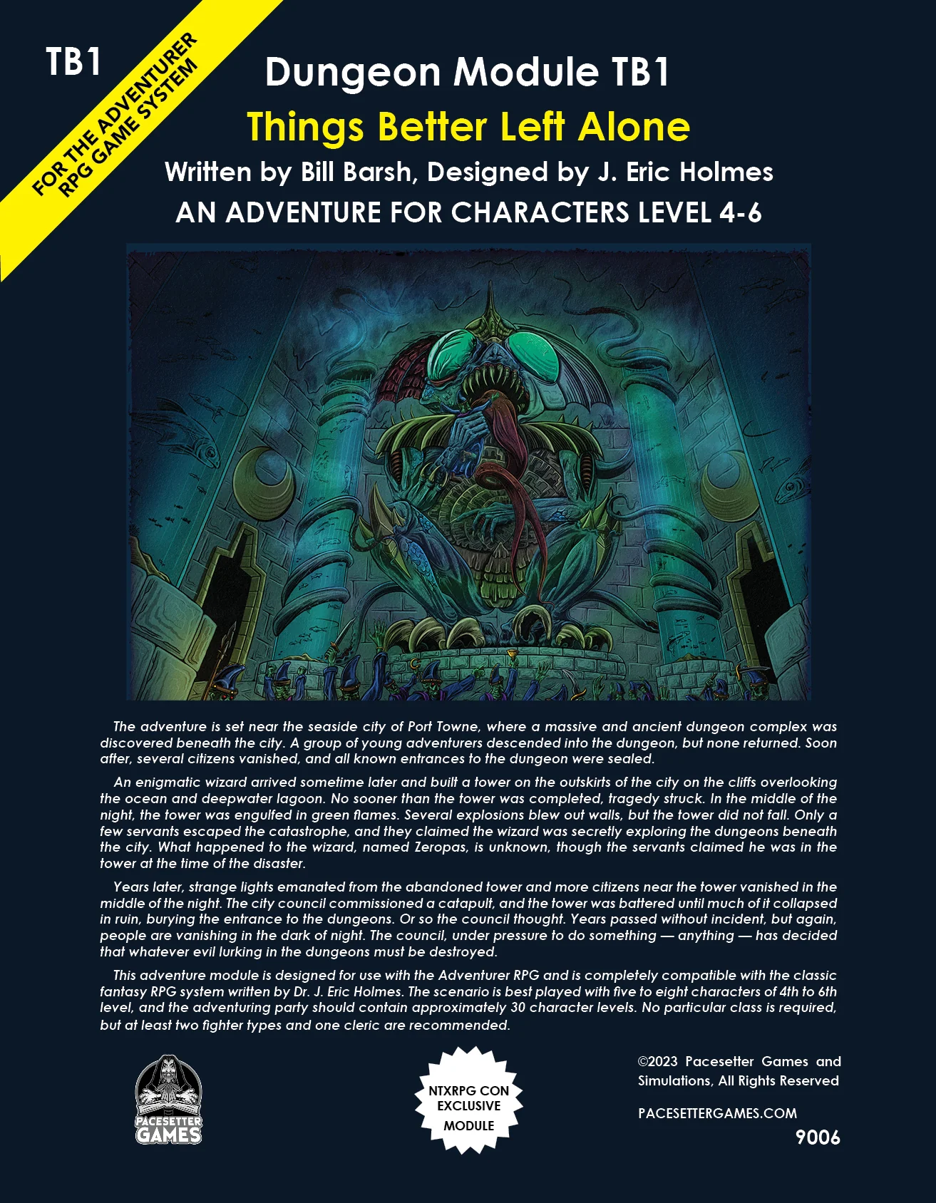 In conjunction with the Dr. John Eric Holmes estate, Pacesetter has produced a massive, 76-page adventure module based on Holmes' home campaign adventure from the mid-1970s. This dungeon was also featured in The Maze of Peril novel by Holmes. We were provided with his original hand-drawn maps and notes to create this amazing adventure. It truly is a window into the early days of Dungeons & Dragons.