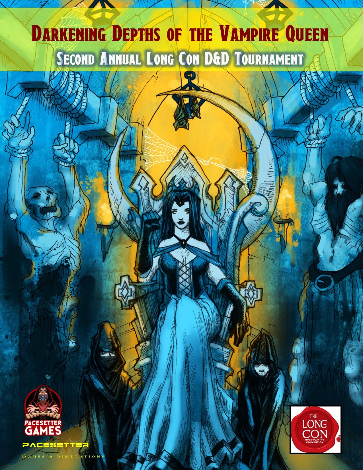 Darkening Depths of the Vampire Queen is a redesign of the second level of the iconic Palace of the Vampire Queen adventure module by Wee Warriors; it was the first adventure module produced for Dungeons & Dragons. This tournament version that was run at the 2023 Long Con Game Convention held in Longview, Texas.