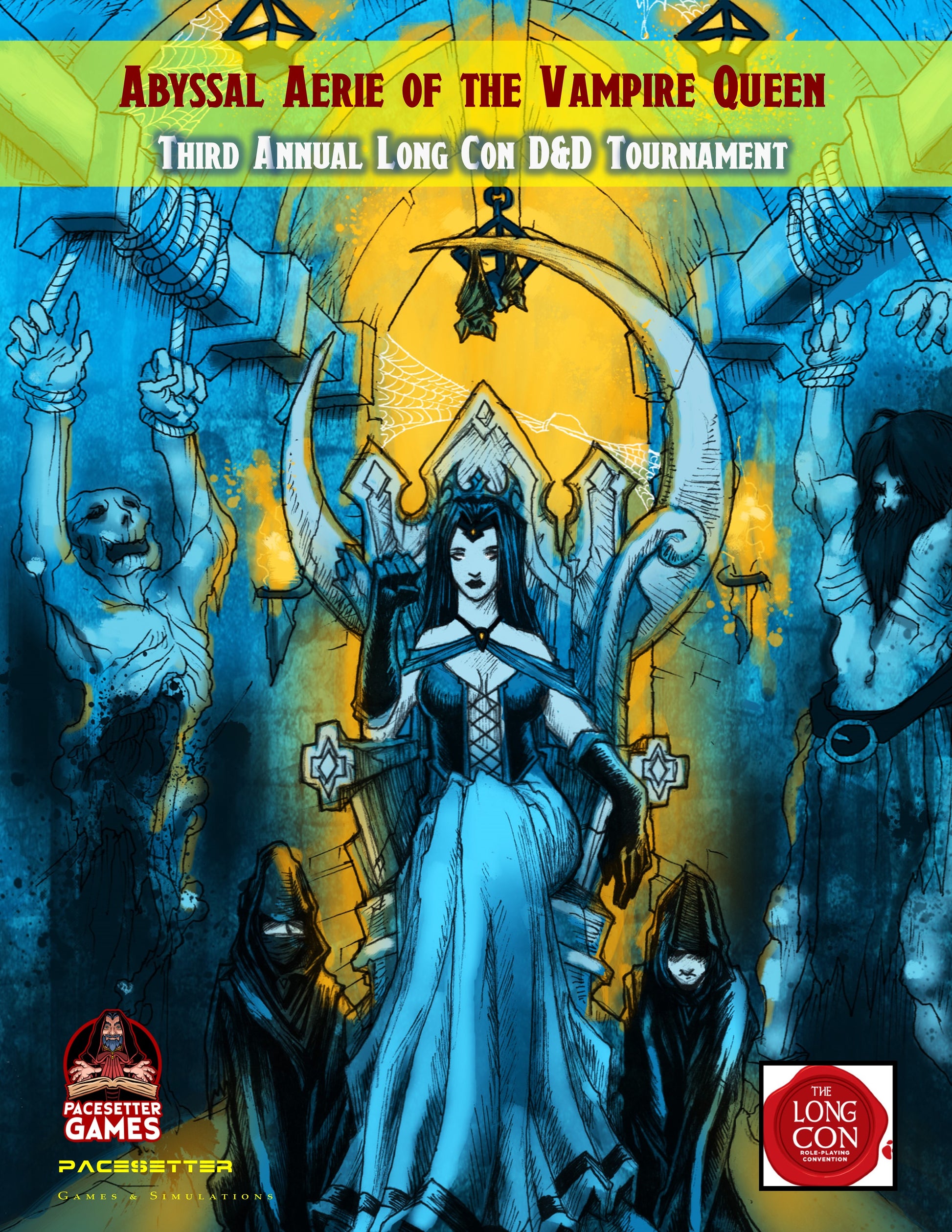 Abyssal Aerie is a redesign of the fifth and final level of the iconic Palace of the Vampire Queen adventure module by Wee Warriors; it was the first adventure module produced for Dungeons & Dragons. This tournament version that was run at the 2024 Long Con Game Convention held in Longview, Texas.