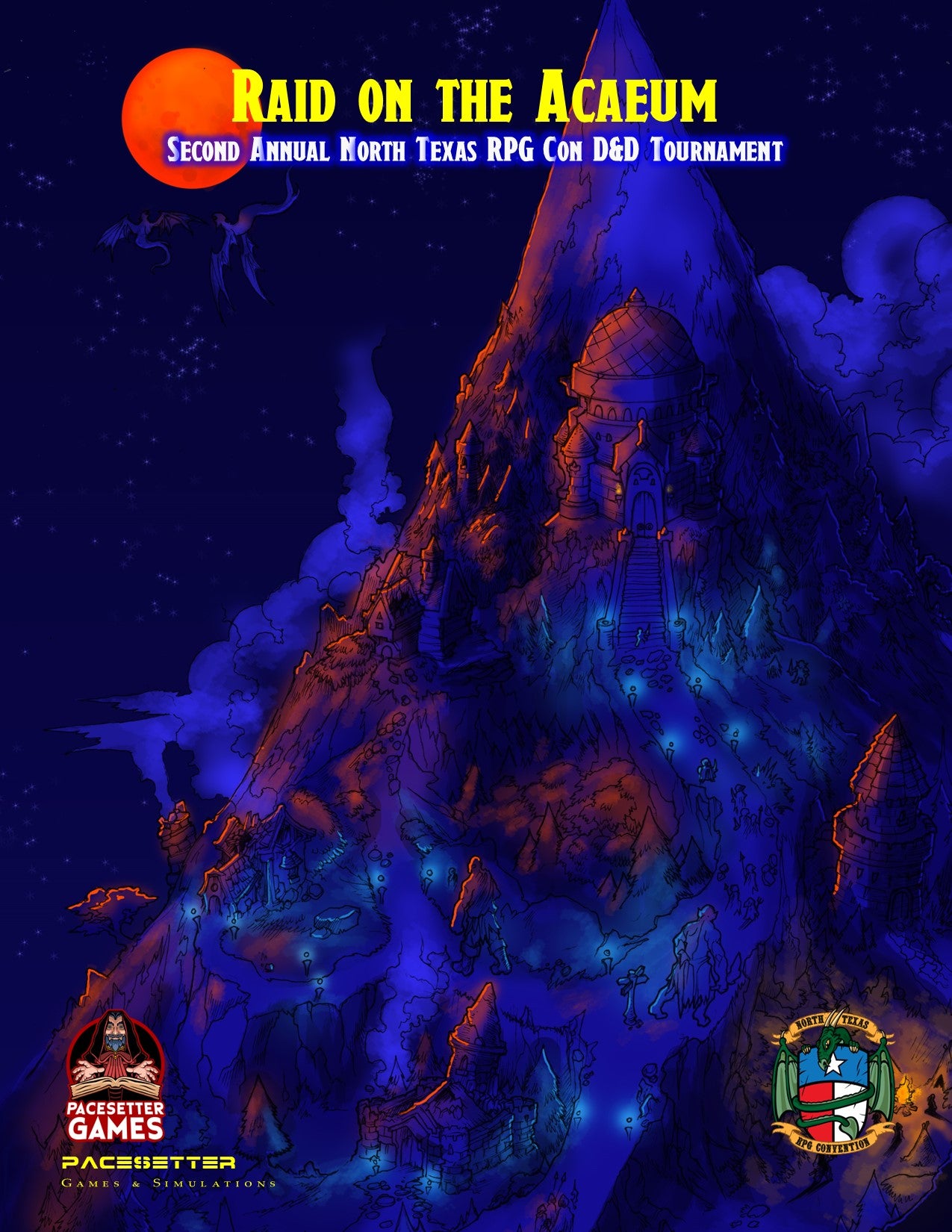Raid on the Acaeum is a short two-part tournament adventure that was held at the fourth annual North Texas RPG Convention in Bedford, Texas in June 2012. This version has been adjusted to run as a non-tournament adventure.